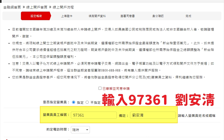 開戶請指定群益期貨劉安清,營業員編號 97361,才能享受最優質的服務唷!