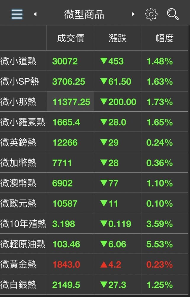 以下是群益期貨可以交易的微型商品: