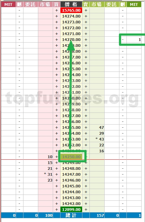 結果 : 當成交價觸及14270,立刻用市價賣出