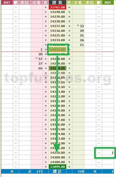 結果 : 當成交價觸及14210,立刻用市價賣出