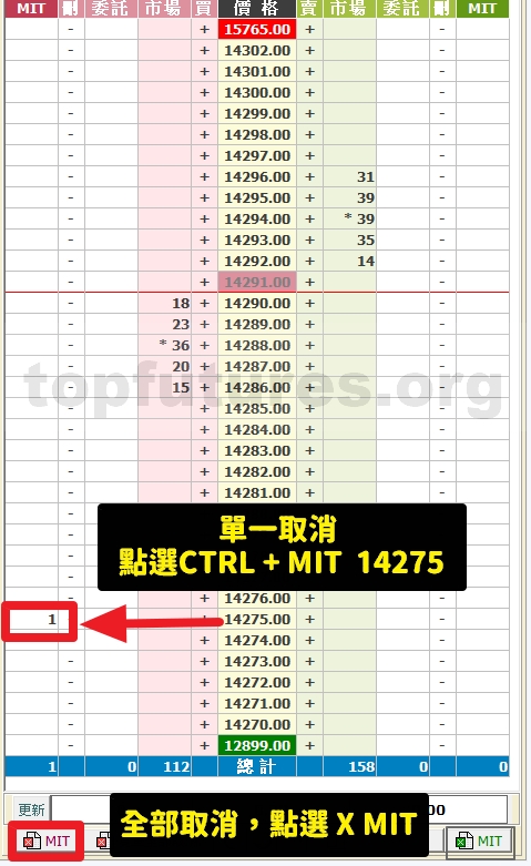 如想取消單一掛單,可以點選 CTRL+掛單的MIT位置