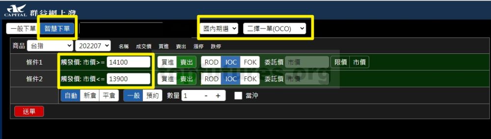 2. 點選「智慧下單」,「國內期選」,「二擇一單(OCO)」